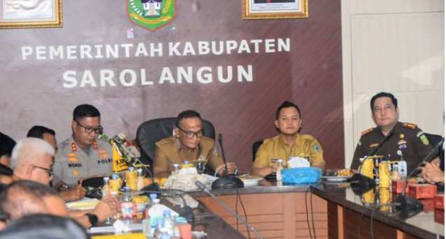 SAROLANGUN UPDATE – Pemerintah Kabupaten Sarolangun menggelar kegiatan Rapat Koordinasi (Rakor) Forum Koordinasi Pimpinan Daerah (Forkopimda) Kabupaten Sarolangun dalam rangka percepatan pembangunan visi dan misi Sarolangun maju 2025-2030, Selasa (26/08/2025) di ruang Pola Utama Kantor Bupati Sarolangun.
