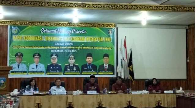 SAROLANGUN UPDATE – Badan Perencanaan dan Pembangunan Daerah (Bappeda) Kabupaten Sarolangun sukses menggelar kegiatan Rapat Koordinasi (Rakor) Diseminasi Hak Kekayaan Intelektual (HKI) Tahun 2025, Rabu (25/06/2025) di ruang Aula Bappeda Sarolangun.