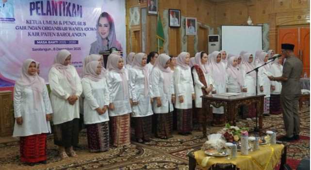 SAROLANGUN UPDATE – Pengurus Gabungan Organisasi Wanita (GOW) Kabupaten Sarolangun masa bakti 2025-2030 secara resmi telah dilantik, yang dipimpin langsung Bupati Sarolangun H Hurmin yang berlangsung dengan lancar, Senin (08/12/2025) di Ruang Pola Kantor Bupati Sarolangun.
