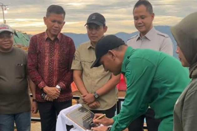 Di atas puncak bukit tempurung, Bupati Sarolangun H Hurmin tampak melakukan penandatangan prasasti peresmian destinasi objek wisata puncak bukit tempurung, yang berlangsung dengan penuh khidmat.
