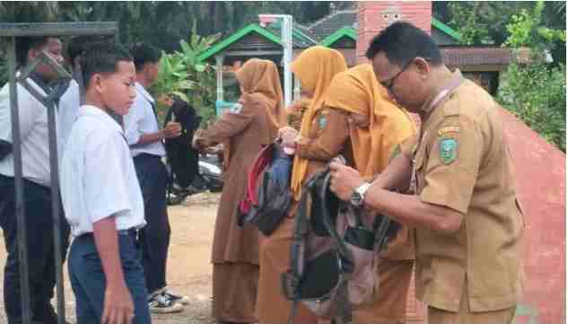 Para siswa dan siswi tak luput dari pemeriksaan oleh jajaran pihak sekolah yang dipantau langsung oleh Disdikbud Sarolangun, sejumlah barang bawaan siswa dan siswi di dalam tas maupun dalam kendaraan dipekriksa.